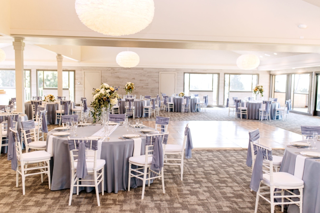 The largest of the banquet rooms and adjacent to the main clubhouse, the Monarch Room can accommodate up to 240 guests. The light, sun-washed room boasts vaulted ceilings and abundant windows that afford a full panoramic view of the golf course. Recently renovated, the room boasts an open floorplan with a private deck that overlooks emerald fairways and offers a spectacular sunsets. With a large bar, private bathrooms and elegant neutral color scheme the Monarch Banquet Room is a great location for almost any type of event.